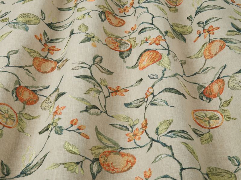 From the Victorian Glasshouse Collection - Alani is available in one colourway and has a polyester and cotton basecloth giving a matt finish and a soft drape. Embroidery is viscose with a subtle lustre. It is graded as a medium weight fabric at 340gms per sq metre and suitable for curtains and accessories.
